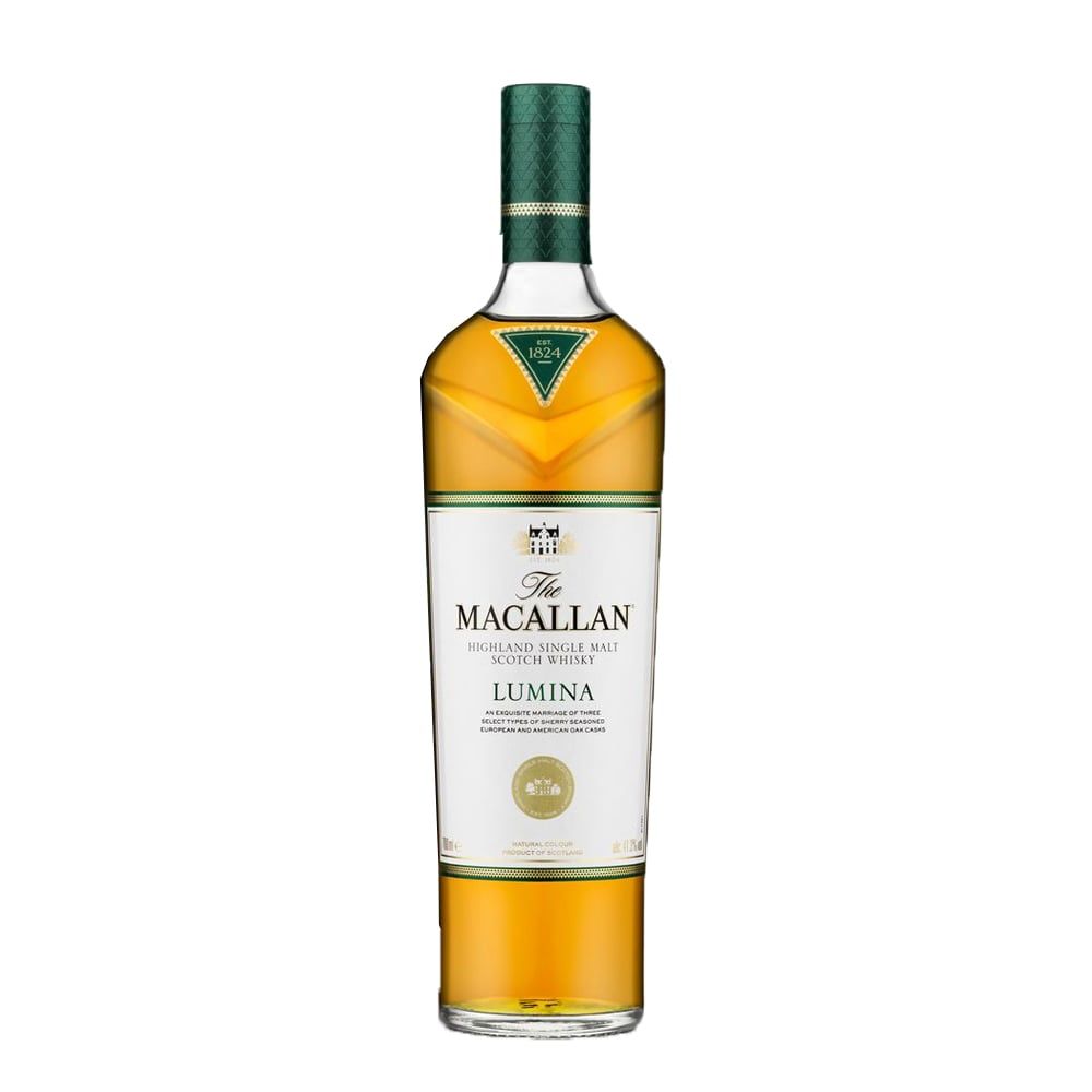 Với vỏ hộp mầu xanh lá cây _ The Macallan Lumina khắc hoạ hình ảnh vòm cây và những tia nắng qua khe lá của những cánh rừng gỗ sồi