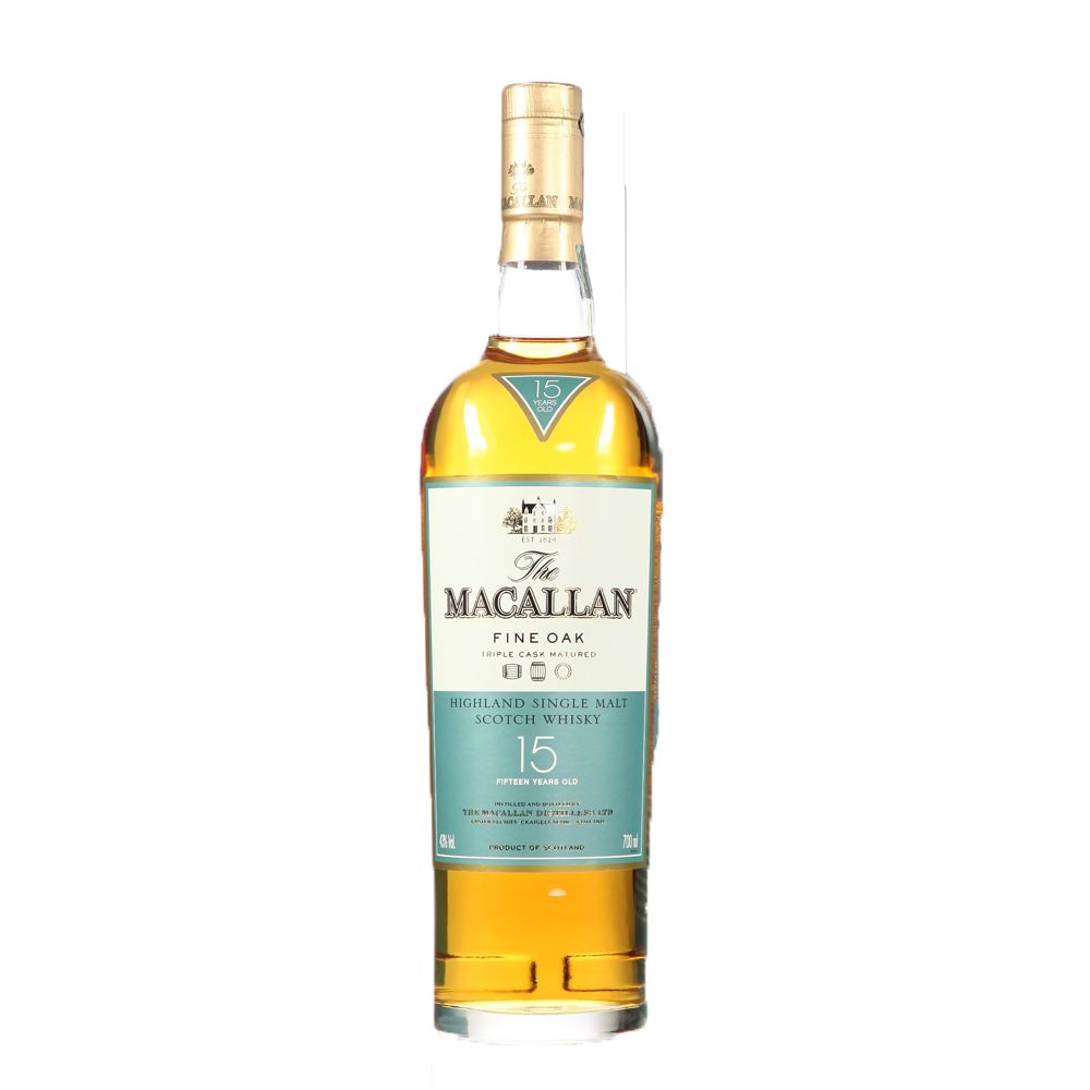 Macallan 15 năm Fine Oak, Fine Oak là một hướng đi mới của Nhà Macallan, vừa hướng đến mục tiêu thương mại, vừa làm phong phú dải sản phẩm của họ. Đây là một bí quyết độc đáo sử dụng các thùng gỗ sội có chất lượng hảo hạng từ gỗ sồi có nguồn gốc Châu Âu đã qua sử dụng chứa rượu sherry, gỗ sồi có nguồn gốc từ Châu Mỹ đã qua sử dụng chứa rượu sherry và gỗ sồi đã qua sử dụng chứa rượu bourbon. Sự phối trộn giữa ba loại rượu single malt được ủ từ 3 loại thùng trên tạo ra một loại rượu Single Malt đầy đặn và êm dịu. Nếu ta nhìn thấy dấu hiệu 3 cái thùng: 1 đứng, 1 nằm, 1 nhìn từ trên xuống, được in trên nhãn thì đích thị chất rượu trong chai được sản xuất bằng phương pháp Triple Cask Matured.